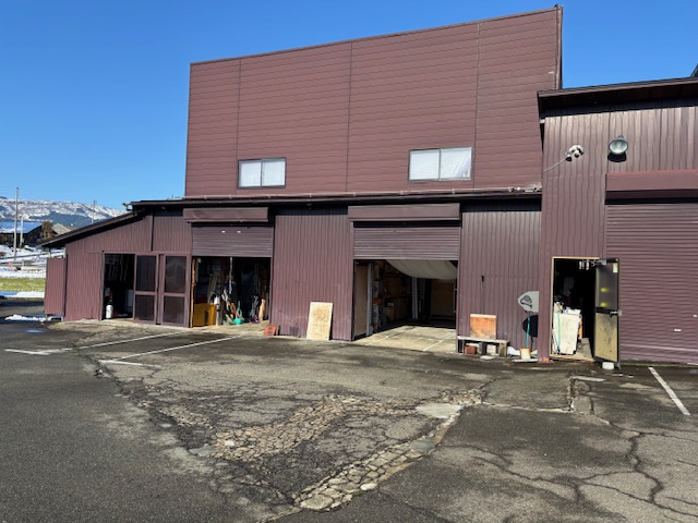 南魚沼市の企業様からのご依頼で、現場調査に伺ったところ、既存倉庫の前に設置して欲しいとのお話がありました。出入り口が2か所、屋根、シャッターがあり、出入り口に干渉しないようにとのご希望でした。