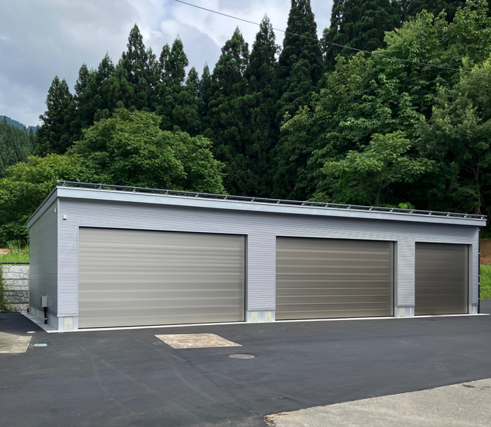 4台用カーポートに1台用を連結してあり、よくあるスチールのシャッターではなくアルミのオーバースライダーを取り付けました。
