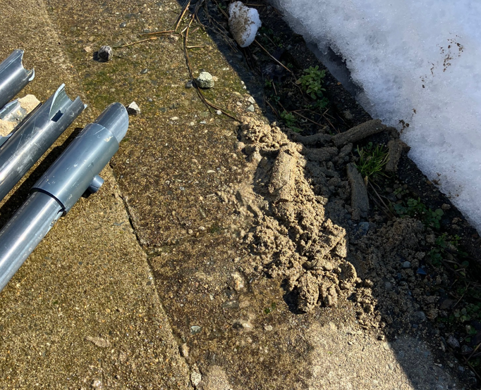 原因は配管内の砂づまりで水の通りが悪くなり、配管内が凍ってしまい、破裂しました。