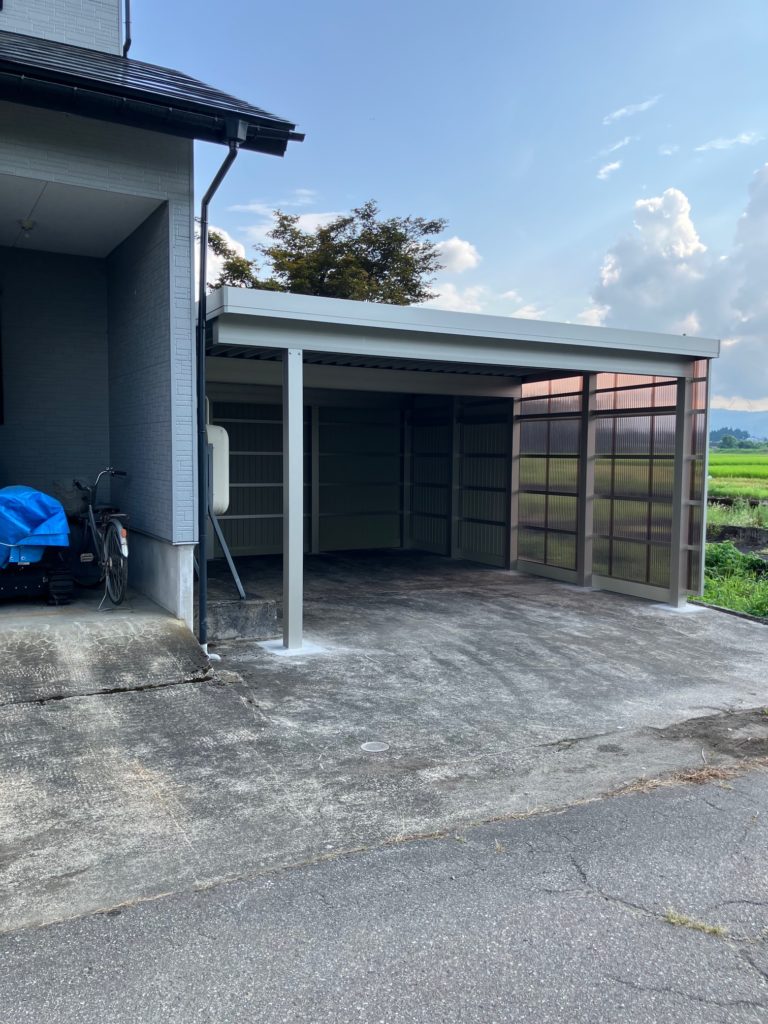昨年の工事ですが、使っていた車庫の老朽化もあり、使えなくなるとのことでカーポート設置のご依頼をいただきました。