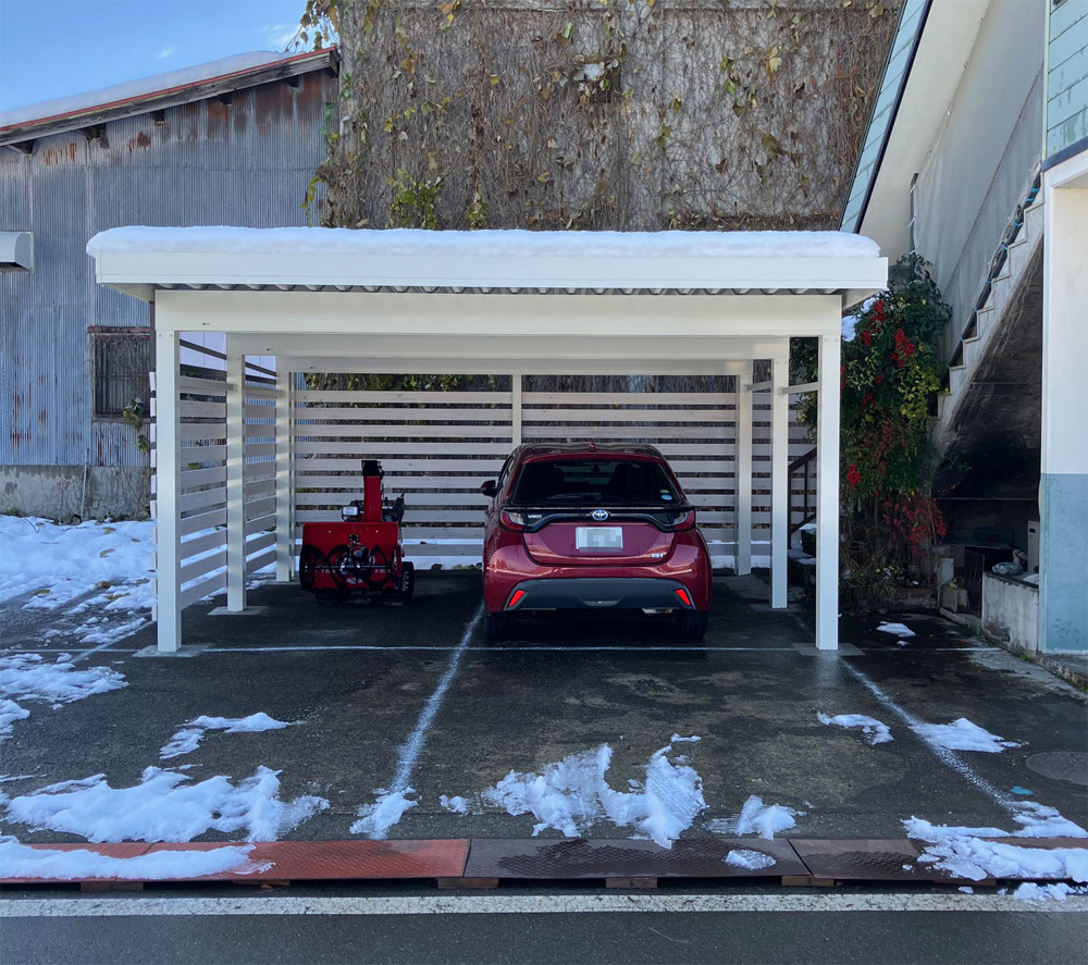 朝の車の除雪からの解放と除雪機を入れるスペースが欲しいとのご依頼を頂戴いたしました。