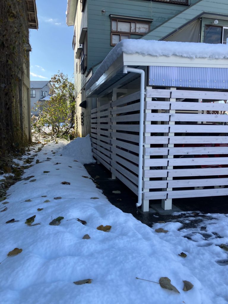 雪囲い板の上部も白の波板を施工。一体感が生まれました。