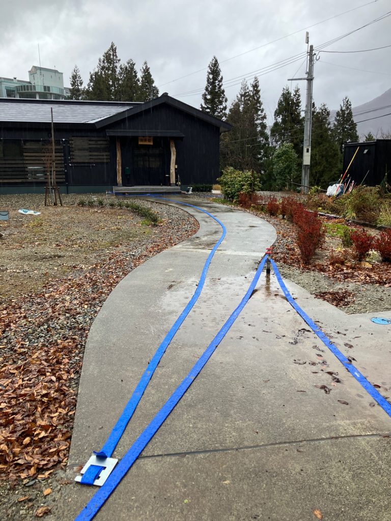 ↑こちらの建物(保養所)のアプローチに除雪用のサニーホースを設置予定